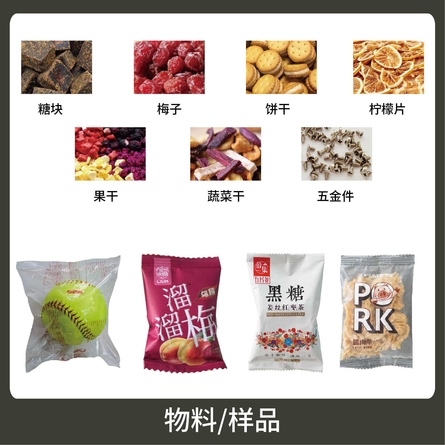 1、適用于不規(guī)則物料的手工計量包裝,如:球、芝麻丸、糖塊、梅子等。